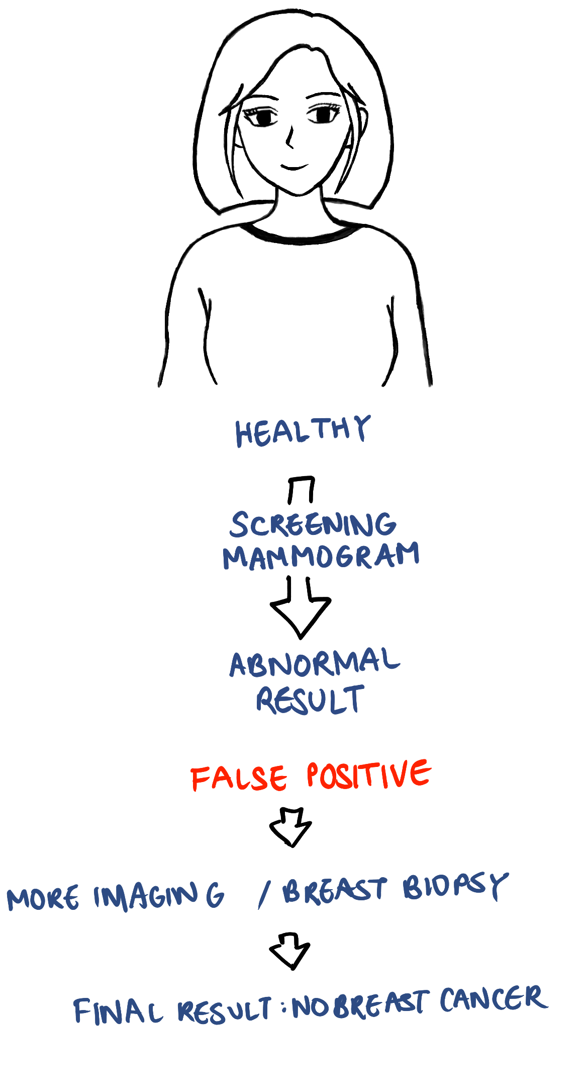 Sometimes a healthy individual undergoing a screening mammogram can get an abnormal mammogram result even though they do not have breast cancer. This is called a false positive result.