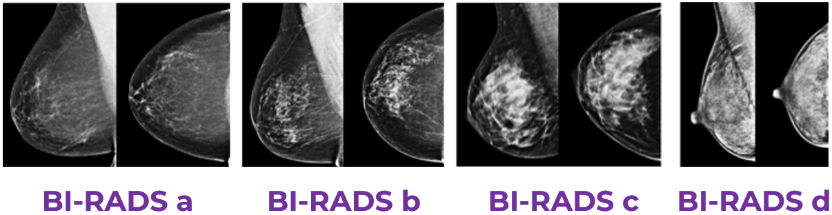 This picture shows the differences in densities of breasts of 4 different people.