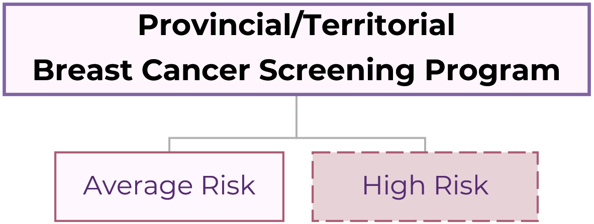 Depending on the region, 2 programs may be available, one for people with an average risk of developing breast cancer and one for higher risk individuals.