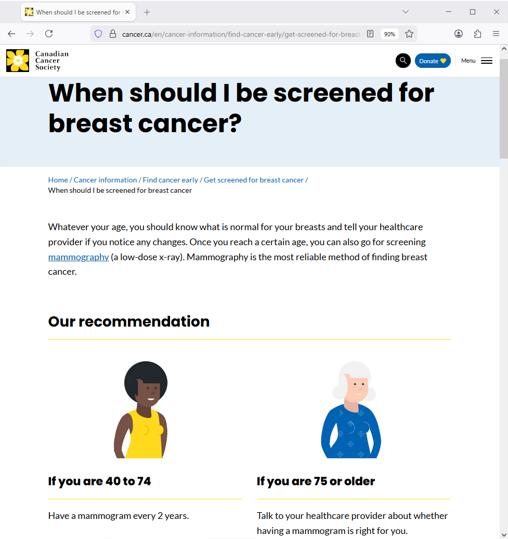 Source: https://cancer.ca/en/cancer-information/find-cancer-early/get-screened-for-breast-cancer/when-should-i-be-screened-for-breast-cancer