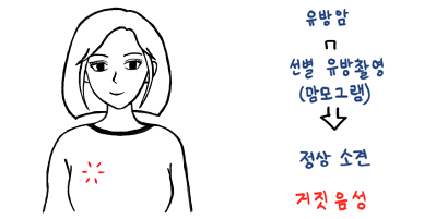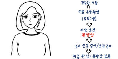 가끔 유방촬영술을 받은 건강한 사람에게서 실제로 유방암이 없음에도 비정상 소견이 나올 수 있습니다. 이를 거짓 양성 결과라고 합니다.