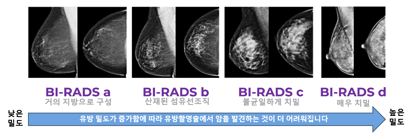 - 일반적으로 젊은 사람일수록 유방 밀도가 높은 경향이 있습니다.